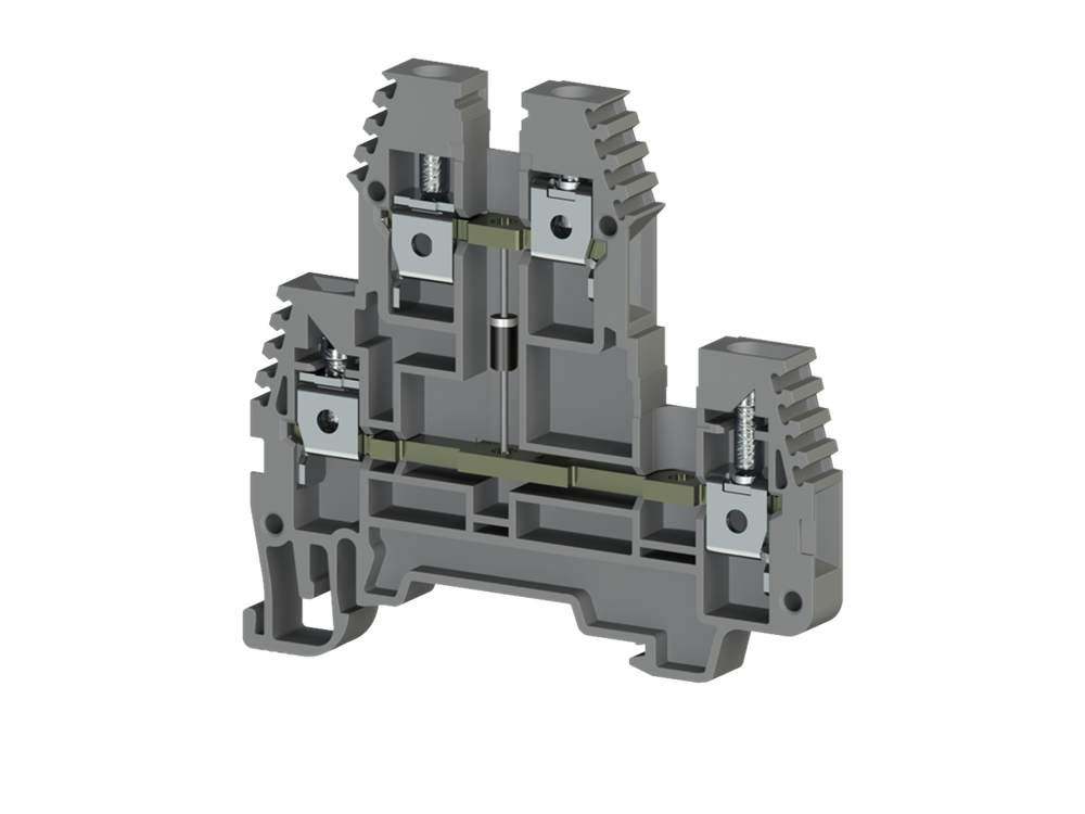 Клеммник 2-х ярусный 4мм.кв., с диодом, (серый); PIK4ND-B