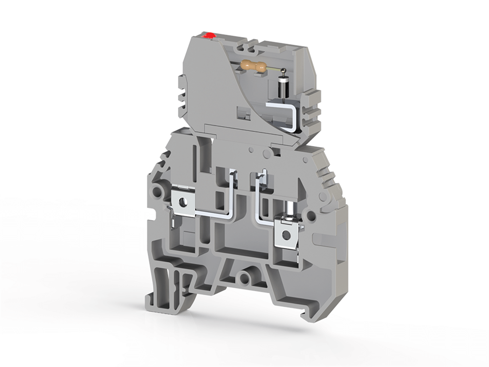 Клеммник с держ. предохр. (5х20, 5х25), съём.картридж, с индикацией 110VDC на DIN-рейку, 4 мм.кв., (серый); ASK 3FLD 110VDC