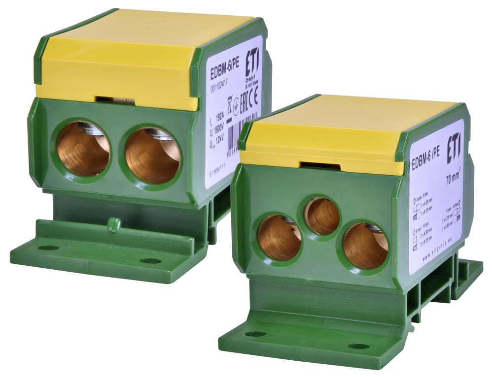 Блок распределительный EDBM-6/PE (192А, 1500V AC/DC, OUT: 1x4-70; 2x4-50; 1x4-25)