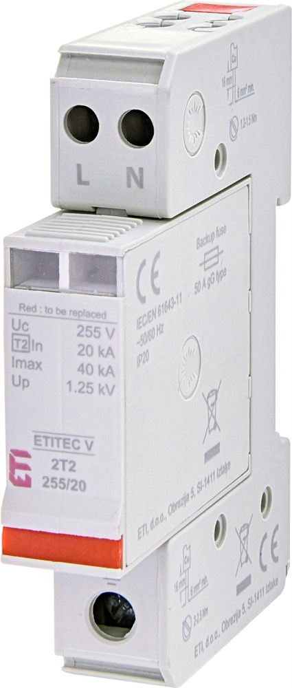 Ограничитель перенапряжения ETITEC V 2T2 255/20 (2+0)