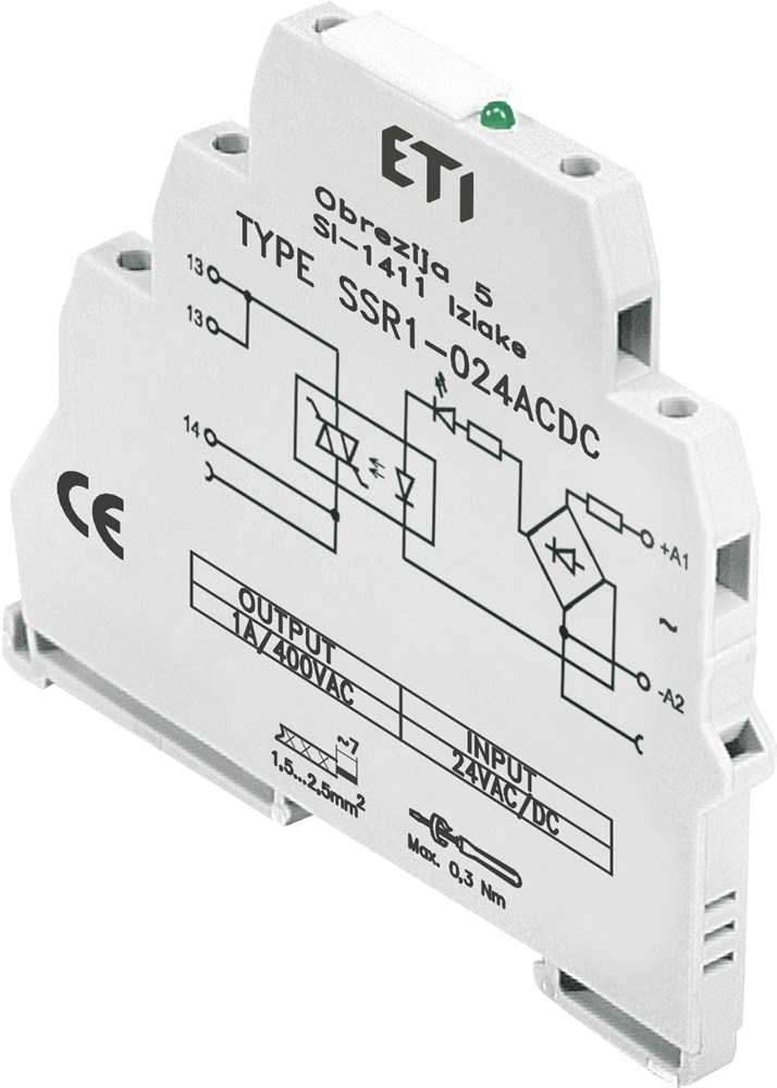 Реле интерфейсное SSR1-024 ACDC (тиристорное, 1NO, 1.2A AC1, 400V AC)