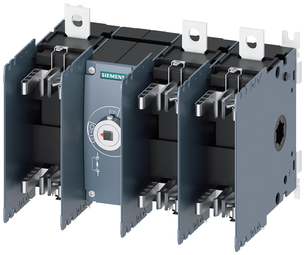 Выключатель-разъединитель с предохранителями 3KF SITOR, 250 A, типоразмер 3, 3-пол., для ножевых предохр. типоразмер 0 и 1 для полупроводниковой защиты, фронт.управл.механизм, по центру, баз.устр-во без ручки, плоские клеммы, без предохранителей