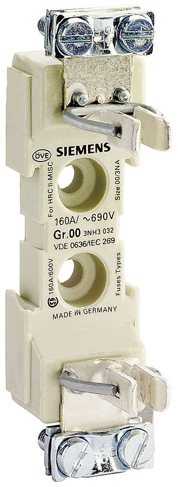ОСНОВАНИЕ ПЛАВКОЙ ВСТАВКИ Uном.=660В, Iном.=160А, ТИПОРАЗМЕР 00, 1-ПОЛЮСН. ПЕТЛЕВОЙ ЗАЖИМ, 6X70 КВ.MM