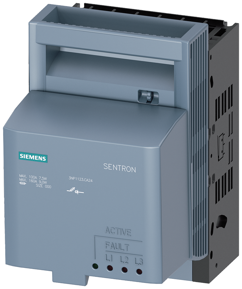 SENTRON, предохр. выключ. разъединитель 3NP1, 3-пол., NH000, 160 A, для установка на монтажную плату, рамочная клемма, мониторинг предохр. электронный EFM15, cover level 45mm