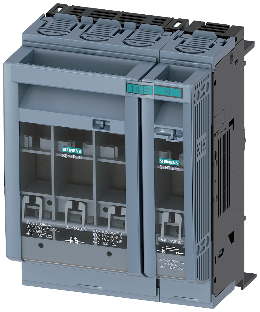SENTRON, fuse switch disconnector 3NP1, 4-pole, NH00, 160 A, for busbar system 8US 60 mm, box terminal, cover level 32/70 mm