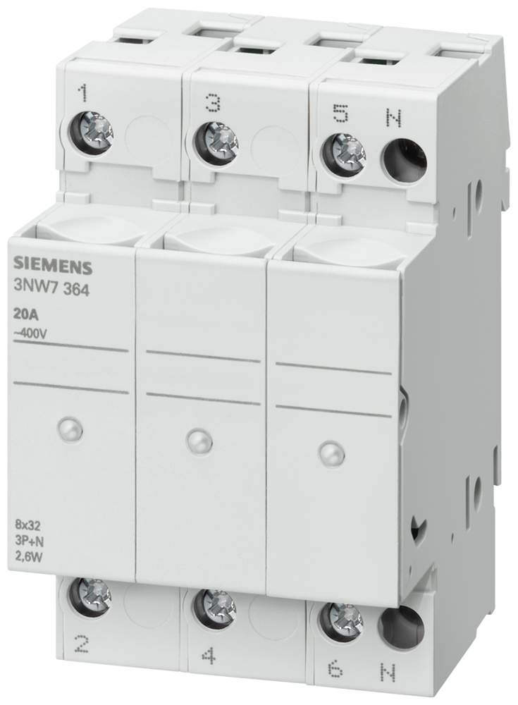 МОДУЛЬНЫЙ ДЕРЖАТЕЛЬ ДЛЯ ЦИЛИНДРИЧЕСКИХ ПРЕДОХРАНИТЕЛЕЙ РАЗМЕР 10X38MM 32A, 3+N-ПОЛ. С СИГНАЛ