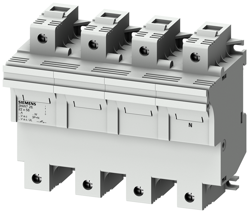 МОДУЛЬНОЕ ОСНОВАНИЕ ПЛАВКОЙ ВСТАВКИ С ИНДИКАТОРОМ ДЛЯ ЦИЛИНДРИЧЕСКИХ ПЛАВКИХ ВСТАВОК РАЗМЕРОМ 22X58MM 100A, 3+N-ПОЛЮСНЫЙ