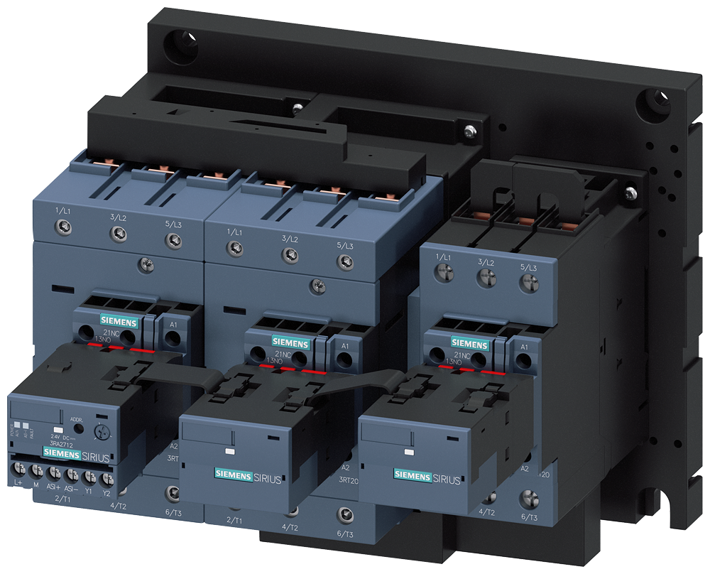 Contactor assembly for star-delta (wye-delta) start with AS-i, AC-3, 90 kW/400 V 20-33 V AC/DC Size S3, screw terminal electrical and mechanical interlock 3 NO+3 NC, integrated varistor