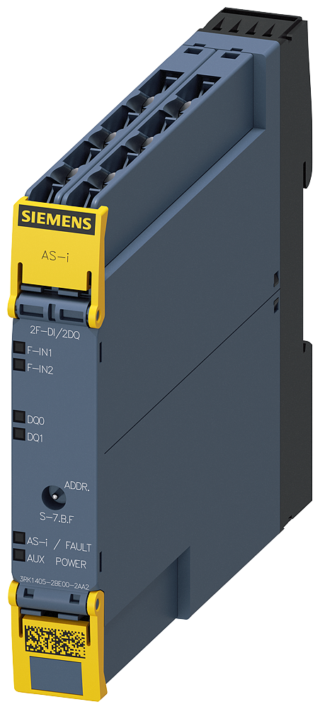 ASIsafe SlimLine Compact module SC17.5F digital safety 2 F-DI/2 DQ, IP20 2 x input for mechanical sensors 2 x standard output 24 V DC Output supply can be switched Screw terminals Overall width 17.5 mm