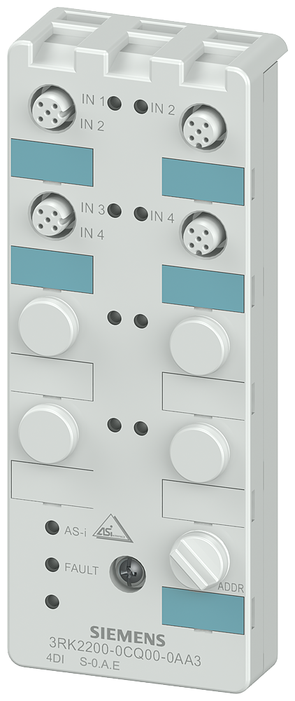 AS-I COMPACT MODULE K60, IP67, A/B-SLAVE, DIGITAL, 4DI, 4X INPUT FOR SENSOR (MECHAN., 2-WIRE, 3-WIRE), PNP, SENSOR SUPPLY FROM U_ASI MAX. TOTAL 200MA, 4 X M12-SOCKET Y-II-ASSIGNMENT, MOUNTING PLATE 3RK19010CA00 TO BE ORDERED SEPARATELY