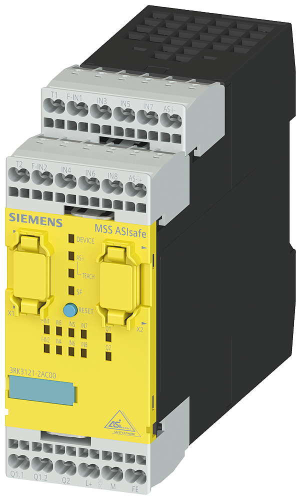 SIRIUS, CENTRAL UNIT 3RK3 ASISAFE BASIC ДЛЯ MODULAR SAFETY SYSTEM 3RK3 1/2F-DI,6DI, 1F-RO,1F-DO,24V DC MONITORING OF ASI SLAVES, CONTROL OF 8 SAFE OUTPUTS ON AS-I BUS PARAMETERIZABLE VIA SW MSS ES WIDTH 45MM SPRING-LOADED TERMINAL UP TO CATEGORY 4 (EN954-1) UP TO SIL3 (IEC 61508) UP TO PERFORMANCE LEVEL E (ISO 13849-1) NO EXPANSION MODULE CAN BE CONNECTED