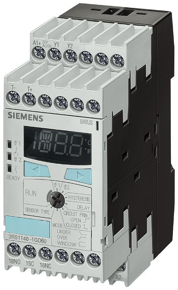 TEMPERATURE MONITORING RELAY PT100/1000, KTY83/84, NTC 3 SENSORS, 2 THRESH., DIGITAL -58 ГРАД. F ДО 932 DEGR. F 24-240V AC/DC 2 X 1 CC + 1 НЗ, ШИРИНА 45 MM ВИНТ. КЛЕММЫ