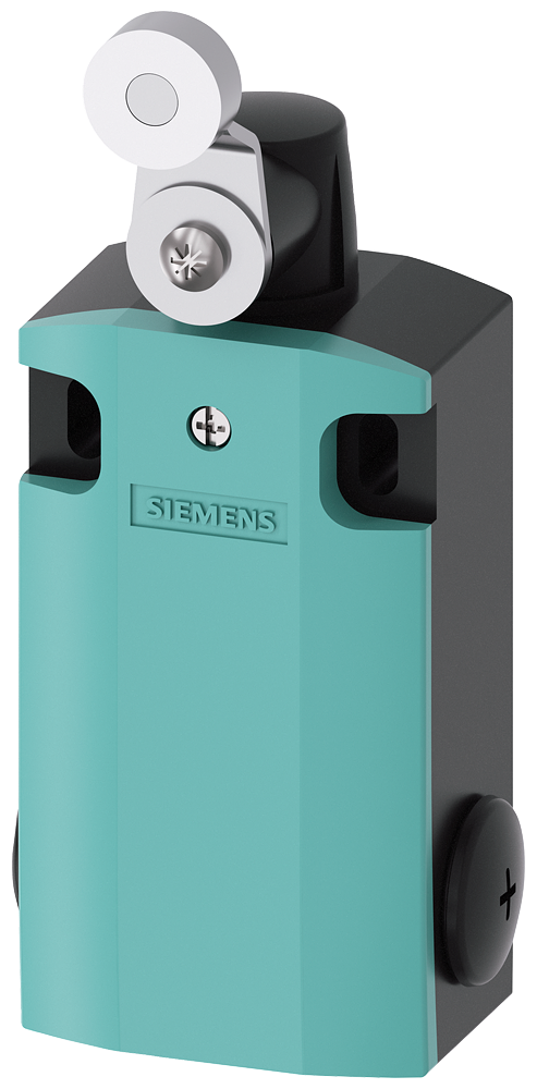 SIRIUS position switch Metal enclosure XL, 56 mm wide, with twist lever 27 mm made from Stainless steel, Stainless steel roller 19 mm, Device connection 3x(M20x1.5), Increased corrosion protection (increased corrosion protection) gold-plated contacts, 2x(1 NO/1 NC) Quick action contacts, IP66/IP67; suitable for use at -40 degrees