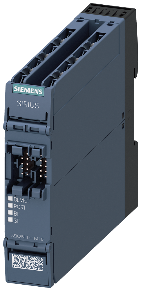 SIRIUS, Интерфейсный модуль Интерфейс PROFINET для предохранительного реле 3SK2 и 3RK3 Интерфейс PROFINET-IO 100 Мбит/с, RJ45 Установочная ширина 22,5 мм Винтовой зажим параметрируется с помощью Safety ES без соединительного кабеля