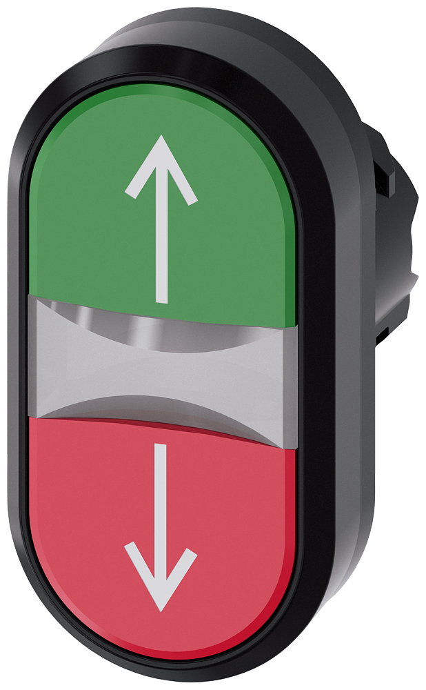 АКТУАТОР ДВОЙНОЙ КНОПКИ С ВОЗМОЖНОСТЬЮ ПОДСВЕТКИ, 22MM, КРУГЛ., ПЛАСТИК, КНОПКА ЗЕЛЁНАЯ: ARROW UP, КНОПКА КРАСНАЯ: ARROW DOWN, FLAT BUTTONS