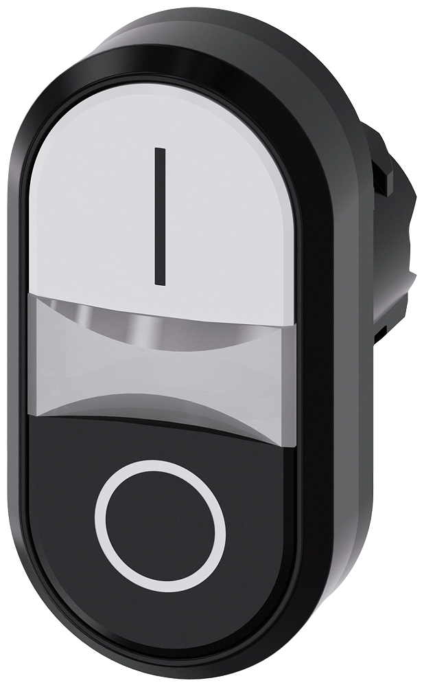 АКТУАТОР ДВОЙНОЙ КНОПКИ С ВОЗМОЖНОСТЬЮ ПОДСВЕТКИ, 22MM, КРУГЛ., ПЛАСТИК, КНОПКА БЕЛАЯ: "I", КНОПКА ЧЁРНАЯ: "O", FLAT BUTTONS