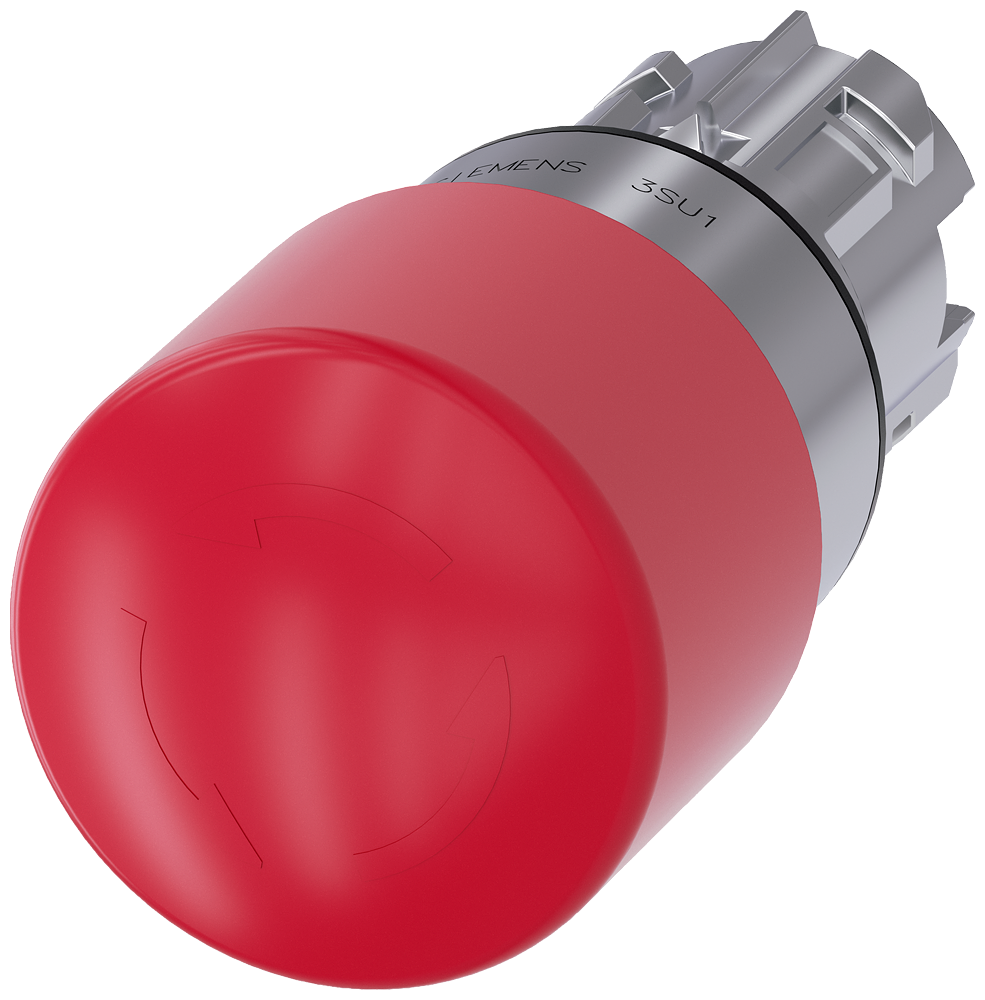 АКТУАТОР АВАРИЙНОЙ ГРИБОВИДНОЙ КНОПКИ, 22MM, КРУГЛ., ГЛЯНЦЕВЫЙ МЕТАЛЛ, КНОПКА КРАСНАЯ, 30MM, ПОДТВЕРЖДЕНИЕ СРАБАТЫВАНИЯ ФИКСАЦИЕЙ (POSITIVE LATCHING), ДЕБЛОКИРОВКА ПОВОРОТОМ