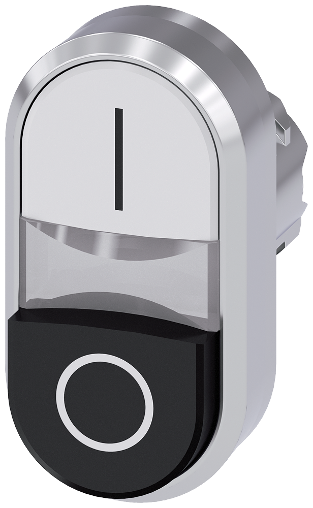 АКТУАТОР ДВОЙНОЙ КНОПКИ С ВОЗМОЖНОСТЬЮ ПОДСВЕТКИ, 22MM, КРУГЛ., ГЛЯНЦЕВЫЙ МЕТАЛЛ, КНОПКИ: БЕЛАЯ (ПЛОСКАЯ) С МАРКИРОВКОЙ "I", ЧЁРНАЯ (ВЫСТУПАЮЩАЯ) C МАРКИРОВКОЙ "0