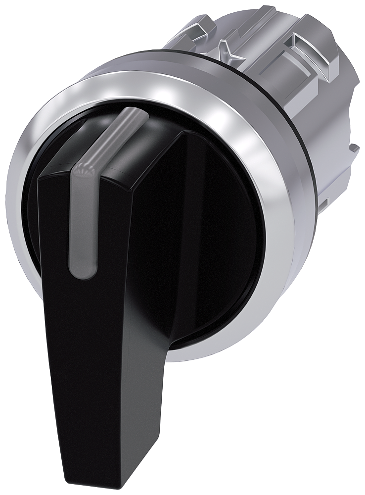 Illuminable selector switch, 22 mm, round, metal shiny, black, Selector switch long, 3 switch positions I-O-II, latching, actuating angle 2x45°, 10:30h/12h/13:30h
