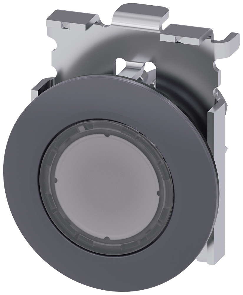 АКТУАТОР КНОПКИ С ВОЗМОЖНОСТЬЮ ПОДСВЕТКИ, 30MM, КРУГЛ., МЕТАЛЛ МАТОВЫЙ, КНОПКА ПРОЗРАЧНАЯ, ПЛОСКОЕ ФРОНТАЛЬНОЕ КОЛЬЦО, С ФИКСАЦИЕЙ, ДЕБЛОКИРОВКА НАЖАТИЕМ