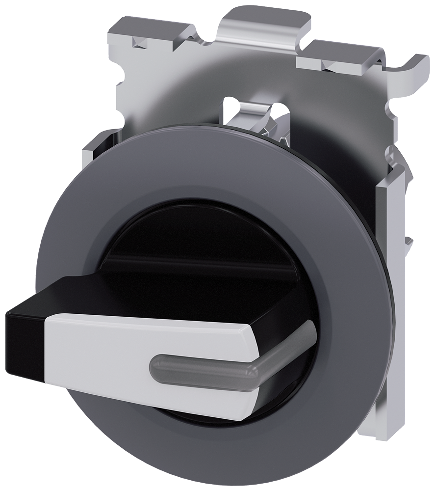 тумблер, с подсветкой, 30 мм, кругл., металл, матовый, цвет: белый, рычаг, короткий, фронтальное кольцо для плоского монтажа, 3 положения переключателя I>O