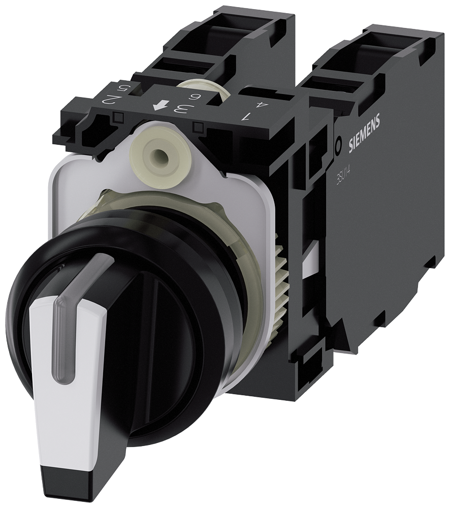 ПОВОРОТНЫЙ ПЕРЕКЛЮЧАТЕЛЬ С ВОЗМОЖНОСТЬЮ ПОДСВЕТКИ, 22MM, КРУГЛЫЙ, ПЛАСТИК, КОРОТКАЯ ЧЁРНАЯ РУКОЯТКА С БЕЛОЙ ВСТАВКОЙ, 3 КОММУТАЦИОННЫХ ПОЛОЖЕНИЯ I-O-II, С ФИКСАЦИЕЙ, 10:30H/12H/13:30H, С ДЕРЖАТЕЛЕМ, 2 X 1NO+1NC, ВИНТОВЫЕ КЛЕММЫ