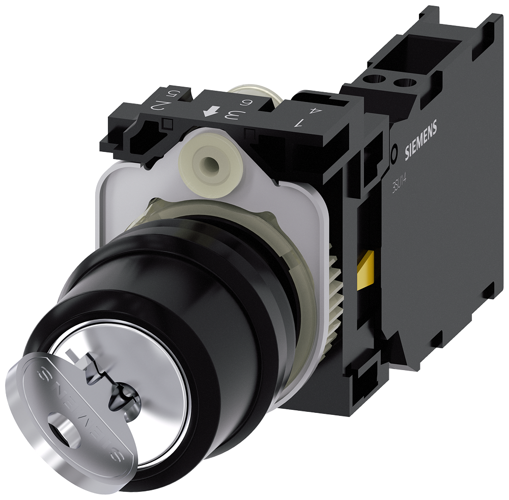 RONIS key-operated switch, 22 mm, round, plastic, lock number SB30, with 2 keys, 2 switch positions O-I, latching, 10:30h/13:30h, with holder, 2 x 1 NC with mounting monitoring, spring-type terminal, possible special locks: SB31, 421, 455