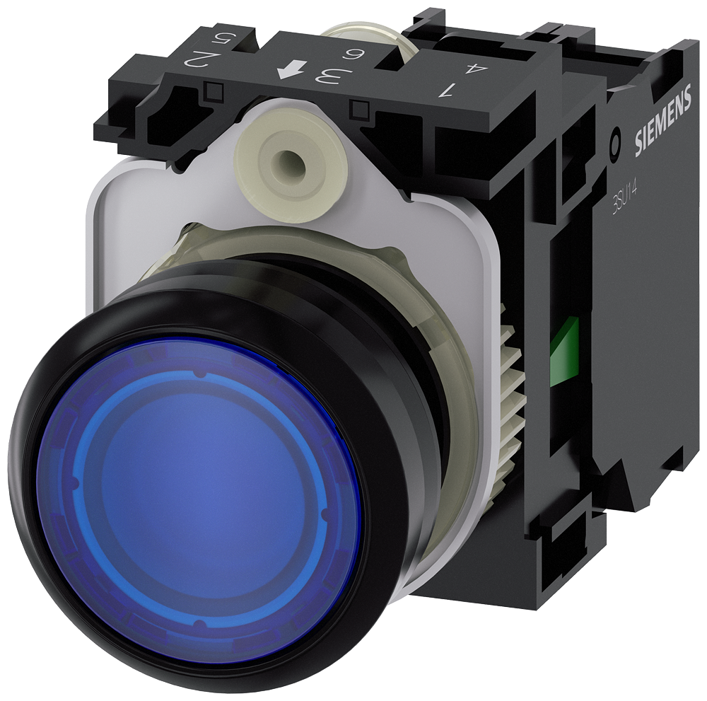 КНОПКА С ПОДСВЕТКОЙ, 22MM, КРУГЛАЯ, ПЛАСТИК, СИНЯЯ, ПЛОСКАЯ КНОПКА, КОНТАКТЫ МГНОВЕННОГО ДЕЙСТВИЯ, С ДЕРЖАТЕЛЕМ, 1NO, МОДУЛЬ ПОДСВЕТКИ С ИНТЕГРИРОВАННЫМ СВЕТОДИОДОМ 110V AC, ВИНТОВЫЕ КЛЕММЫ
