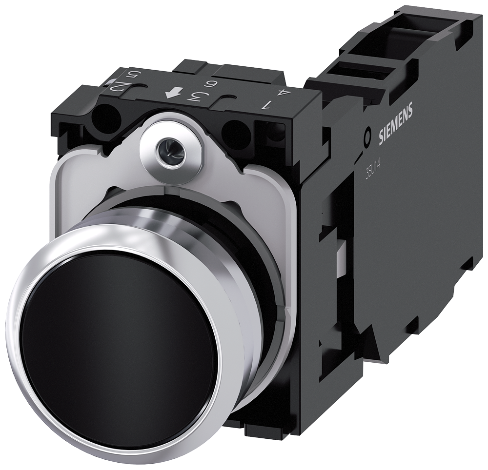 КНОПКА, 22MM, КРУГЛАЯ, МЕТАЛЛИЧЕСКАЯ ГЛЯНЦЕВАЯ, ЧЁРНАЯ, ПЛОСКАЯ КНОПКА, КОНТАКТЫ МГНОВЕННОГО ДЕЙСТВИЯ, С ДЕРЖАТЕЛЕМ, 1NO+1NC, ВИНТОВЫЕ КЛЕММЫ