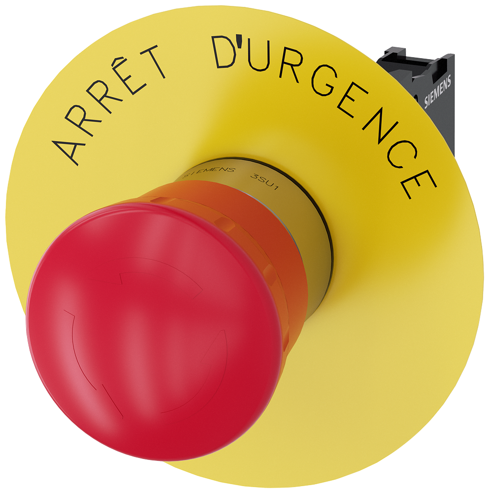 АВАРИЙНАЯ ГРИБОВИДНАЯ КНОПКА, 22MM, КРУГЛАЯ, МЕТАЛЛИЧЕСКАЯ ГЛЯНЦЕВАЯ, КРАСНАЯ, 40MM, С ФИКСАЦИЕЙ, ДЕБЛОКИРОВКА ПОВОРОТОМ, С ЖЁЛТОЙ ПОДЛОЖКОЙ, НАДПИСЬ: ARRET D'URGENCE, С ДЕРЖАТЕЛЕМ, 1NC, ВИНТОВЫЕ КЛЕММЫ