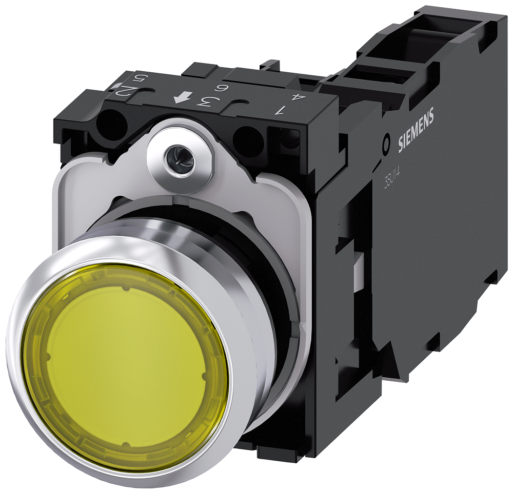 КНОПКА С ПОДСВЕТКОЙ, 22MM, КРУГЛАЯ, МЕТАЛЛИЧЕСКАЯ ГЛЯНЦЕВАЯ, ЖЁЛТАЯ, ПЛОСКАЯ КНОПКА, КОНТАКТЫ МГНОВЕННОГО ДЕЙСТВИЯ, С ДЕРЖАТЕЛЕМ, 1NO+1NC, МОДУЛЬ ПОДСВЕТКИ С ИНТЕГРИРОВАННЫМ СВЕТОДИОДОМ 230V AC, ВИНТОВЫЕ КЛЕММЫ