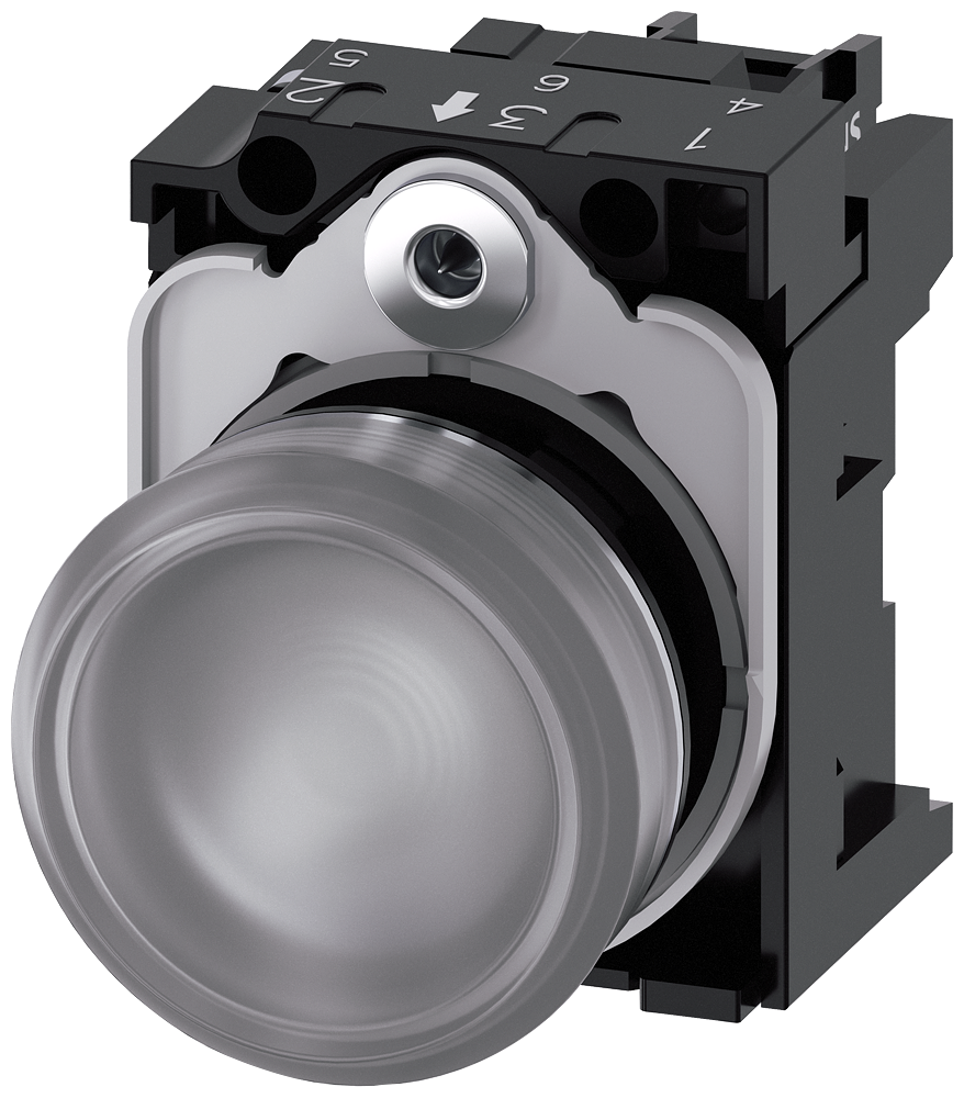 СВЕТОВОЙ ИНДИКАТОР, 22MM, КРУГЛЫЙ, МЕТАЛЛИЧЕСКИЙ ГЛЯНЦЕВЫЙ, ПРОЗРАЧНЫЙ МАТОВЫЙ РАССЕИВАТЕЛЬ, С ДЕРЖАТЕЛЕМ, МОДУЛЬ ПОДСВЕТКИ С ИНТЕГРИРОВАННЫМ СВЕТОДИОДОМ 230V AC, ВИНТОВЫЕ КЛЕММЫ