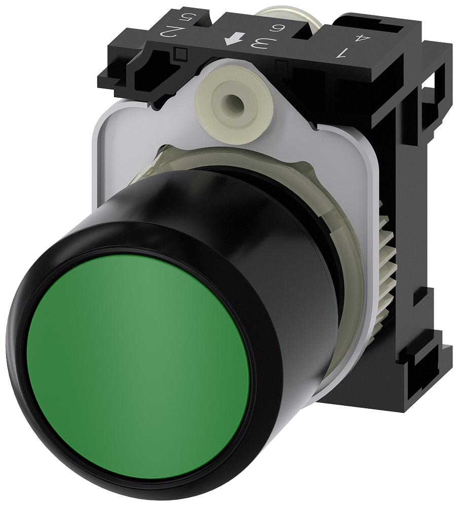 АКТУАТОР КНОПКИ С ВЫСОКИМ ФРОНТАЛЬНЫМ КОЛЬЦОМ (12MM), 22MM, КРУГЛ., ПЛАСТИК, КНОПКА ЗЕЛЁНАЯ ПЛОСКАЯ, БЕЗ ФИКСАЦИИ, С ДЕРЖАТЕЛЕМ