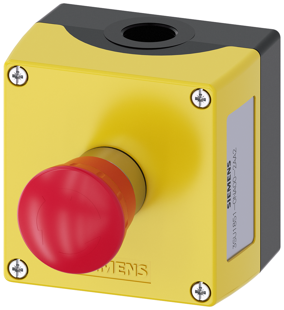 ПОСТ УПРАВЛЕНИЯ, 22MM, С КРУГЛЫМ ВЫРЕЗОМ, МАТЕРИАЛ КОРПУСА - МЕТАЛЛ, КРЫШКА КОРПУСА - ЖЁЛТАЯ, 1 ТОЧКА УПРАВЛЕНИЯ, МЕТАЛЛ, A=КРАСНАЯ АВАРИЙНАЯ ГРИБОВИДНАЯ КНОПКА, 40MM, ДЕБЛОКИРОВКА ПОВОРОТОМ, ТОЧКА УПРАВЛЕНИЯ - ПО ЦЕНТРУ, 1НЗ, ВИНТОВЫЕ КЛЕММЫ, МОНТАЖ КОНТАКТНЫХ МОДУЛЕЙ - НА ОСНОВАНИИ КОРПУСА, TOP AND BOTTOM 1 X M20 EACH