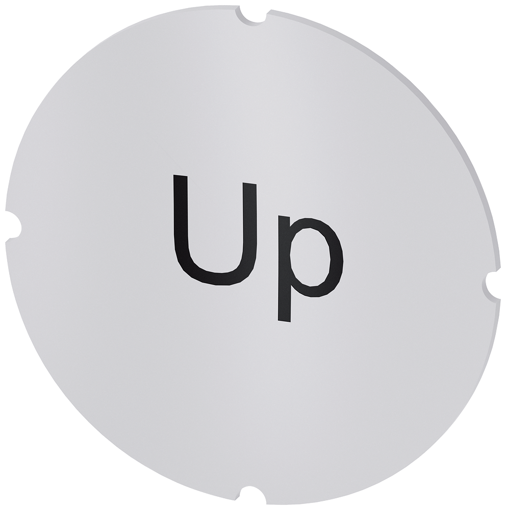 СМЕННЫЙ МАРКЕР ДЛЯ КНОПОК С ПОДСВЕТКОЙ, КРУГЛЫЙ, МОЛОЧНОГО ЦВЕТА С ЧЕРНОЙ НАДПИСЬЮ, С МАРКИРОВКОЙ: UP