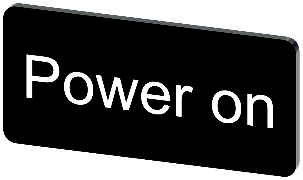 МАРКИРОВОЧНАЯ ТАБЛИЧКА ДЛЯ НАКЛЕИВАНИЯ ИЛИ ЗАЩЕЛКИВАНИЯ НА ДЕРЖАТЕЛЕ, РАЗМЕР 12.5 X 27MM, ЧЕРНАЯ, НАДПИСЬ БЕЛАЯ, С МАРКИРОВКОЙ: POWER ON
