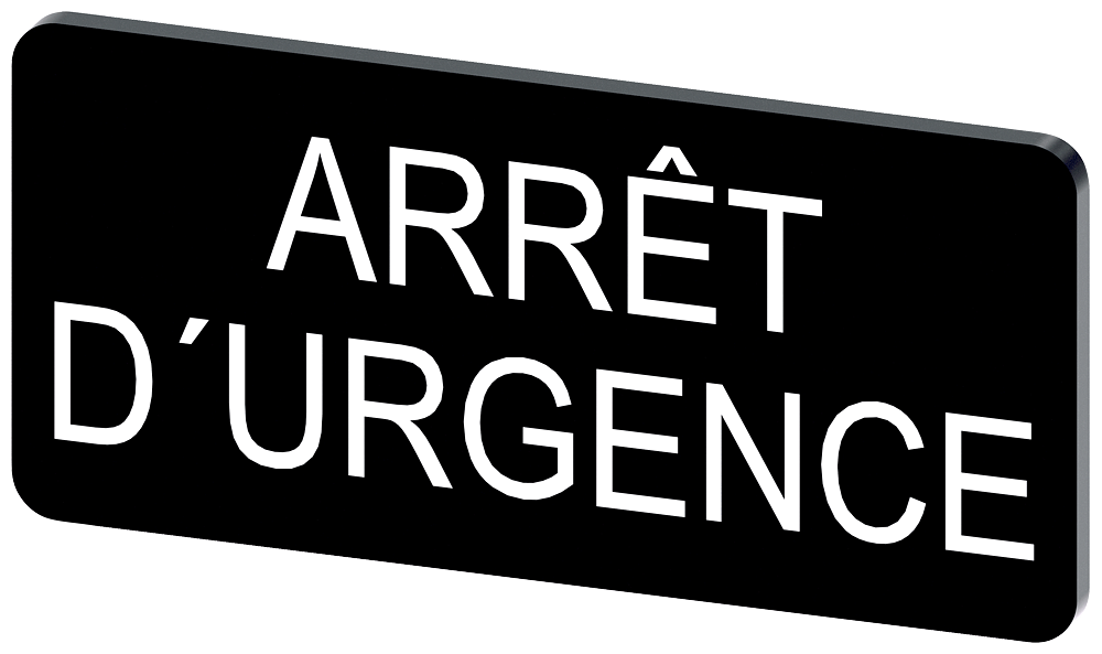 МАРКИРОВОЧНАЯ ТАБЛИЧКА ДЛЯ НАКЛЕИВАНИЯ ИЛИ ЗАЩЕЛКИВАНИЯ НА ДЕРЖАТЕЛЕ, РАЗМЕР 12.5 X 27MM, ЧЕРНАЯ, НАДПИСЬ БЕЛАЯ, С МАРКИРОВКОЙ: ARRET D'URGENCE