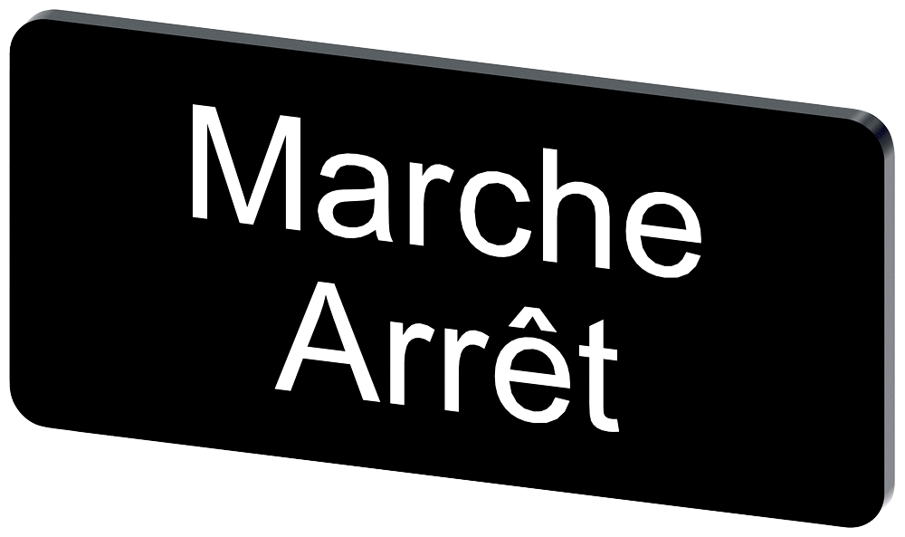 МАРКИРОВОЧНАЯ ТАБЛИЧКА ДЛЯ НАКЛЕИВАНИЯ ИЛИ ЗАЩЕЛКИВАНИЯ НА ДЕРЖАТЕЛЕ, РАЗМЕР 12.5 X 27MM, ЧЕРНАЯ, НАДПИСЬ БЕЛАЯ, С МАРКИРОВКОЙ: MARCHE ARRET