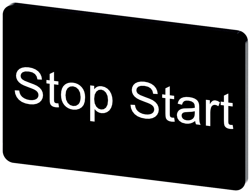 МАРКИРОВОЧНАЯ ТАБЛИЧКА ДЛЯ НАКЛЕИВАНИЯ ИЛИ ЗАЩЕЛКИВАНИЯ НА ДЕРЖАТЕЛЕ, РАЗМЕР 17.5 X 27MM, ЧЕРНАЯ, НАДПИСЬ БЕЛАЯ, С МАРКИРОВКОЙ: STOP START