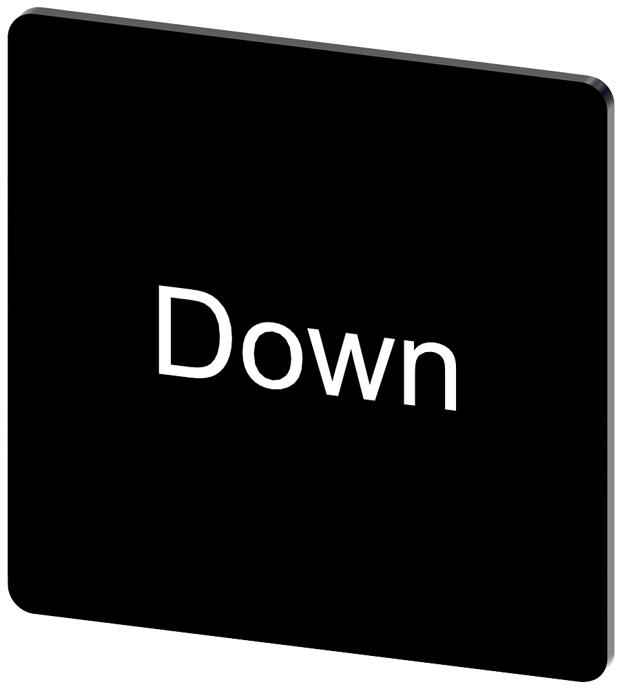 МАРКИРОВОЧНАЯ ТАБЛИЧКА ДЛЯ НАКЛЕИВАНИЯ ИЛИ ЗАЩЕЛКИВАНИЯ НА ДЕРЖАТЕЛЕ, РАЗМЕР 27 X 27MM, ЧЕРНАЯ, НАДПИСЬ БЕЛАЯ, С МАРКИРОВКОЙ: DOWN