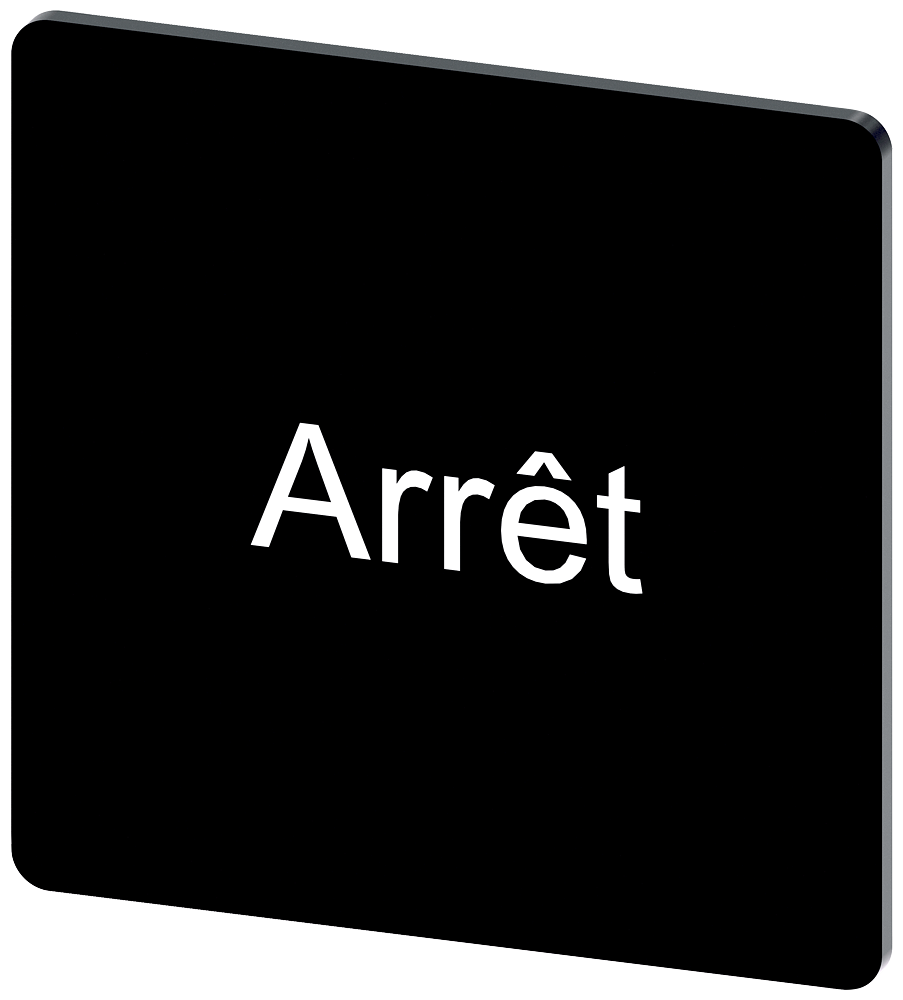 МАРКИРОВОЧНАЯ ТАБЛИЧКА ДЛЯ НАКЛЕИВАНИЯ ИЛИ ЗАЩЕЛКИВАНИЯ НА ДЕРЖАТЕЛЕ, РАЗМЕР 27 X 27MM, ЧЕРНАЯ, НАДПИСЬ БЕЛАЯ, С МАРКИРОВКОЙ: ARRET