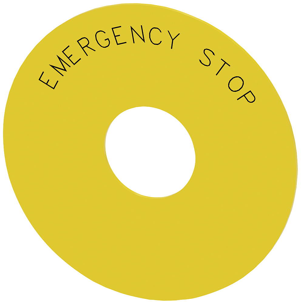 ПОДЛОЖКА ДЛЯ КНОПОК АВАРИЙНОГО ОСТАНОВА, ЖЕЛТАЯ, САМОКЛЕЯЩАЯСЯ, НАРУЖНЫЙ ДИАМЕТР 75MM, ДИАМЕТР ОТВЕРСТИЯ 23MM, С МАРКИРОВКОЙ: EMERGENCY STOP