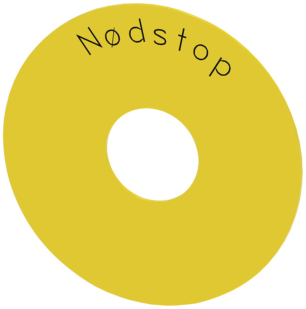 ПОДЛОЖКА ДЛЯ КНОПОК АВАРИЙНОГО ОСТАНОВА, ЖЕЛТАЯ, САМОКЛЕЯЩАЯСЯ, НАРУЖНЫЙ ДИАМЕТР 75MM, ДИАМЕТР ОТВЕРСТИЯ 23MM, С МАРКИРОВКОЙ: NODSTOP