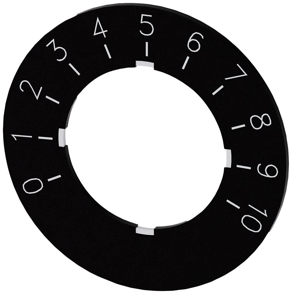 Labeling plate for potentiometer, black label, white font, with inscription: 0...10