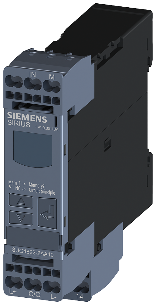 Digital monitoring relay Current monitoring, 22.5 mm for IO-Link 0.05...10.0 A AC/DC Overcurrent and undercurrent Transformer scaling factor Hysteresis 0.01 to 5.0 A ON-delay time Tripping delay time 1 change-over contact, spring-type connection system