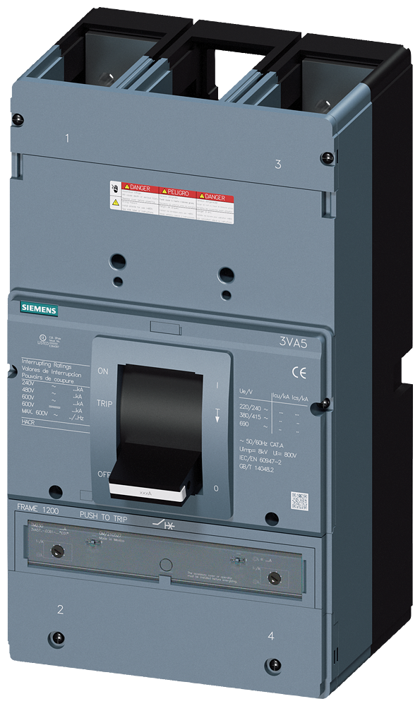 circuit breaker 3VA5 UL frame 1200 breaking capacity class M 35kA @ 480 V 2-pole, line protection TM230, FTAM, In=900A overload protection Ir=900A fixed short circuit protection Ii=5 - 10 x In w/o connection