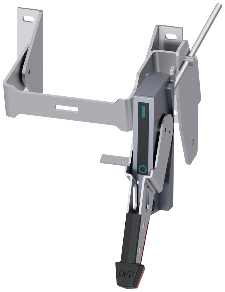 Operating Unit with Rod Variable Depth Flange Mounted operator kit, consisting of: handle steel epoxy coated NEMA 1, 12, 3R black=OFF, red=ON Switching mechanism Mounting depth 8'' to 16'' Accessory for: 3VA5 250 3VA6 250