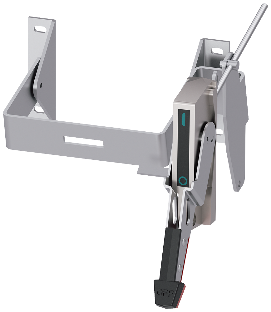 Operating Unit with Rod Variable Depth Flange Mounted operator kit, consisting of: handle steel chrome plated NEMA 4/4X black=OFF, red=ON Switching mechanism Mounting depth 8'' to 16'' Accessory for: 3VA5 400, 3VA5 600 3VA6 400, 3VA6 600