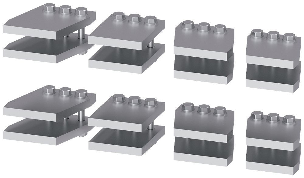 rear horizontal main connections for circuit breaker in fixed-mounted version size 2, 4-pole for 3WA1 breaking capacity class S / M / H / E In = 4000 A spare part for Z option D04 (same center-to-center spacing L1-L2-L3) 1 set (for complete circuit breaker)