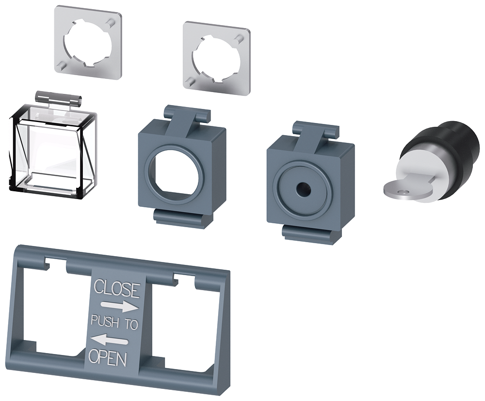 Accessory Circuit breaker 3WA, Interlocking for mechanical Open/Close with CES lock Set each consisting of 2 transparent covers for sealing or for attaching padlocks + cover with 6.35 mm hole + lock mount for safety lock for key operation CES lock